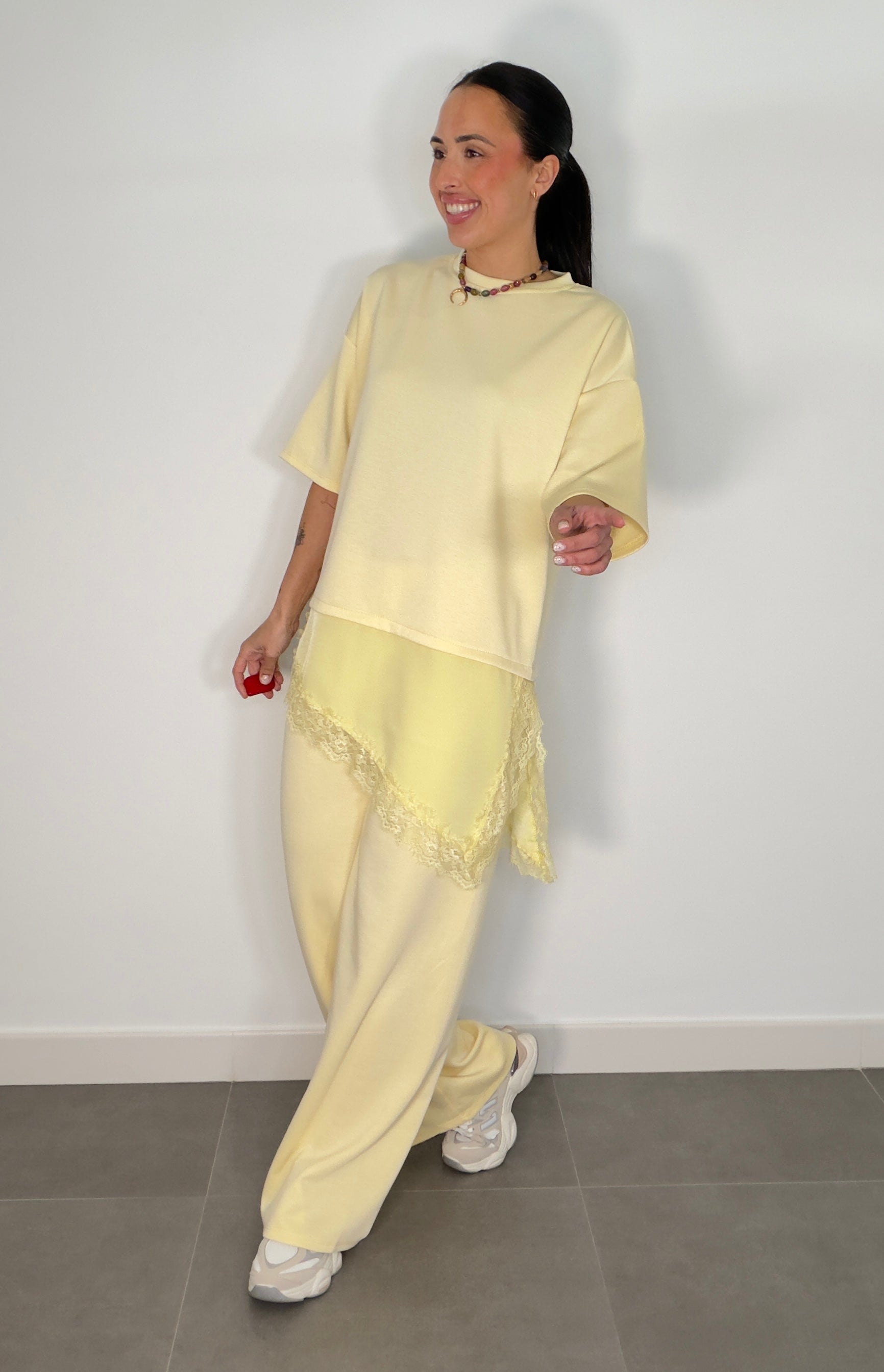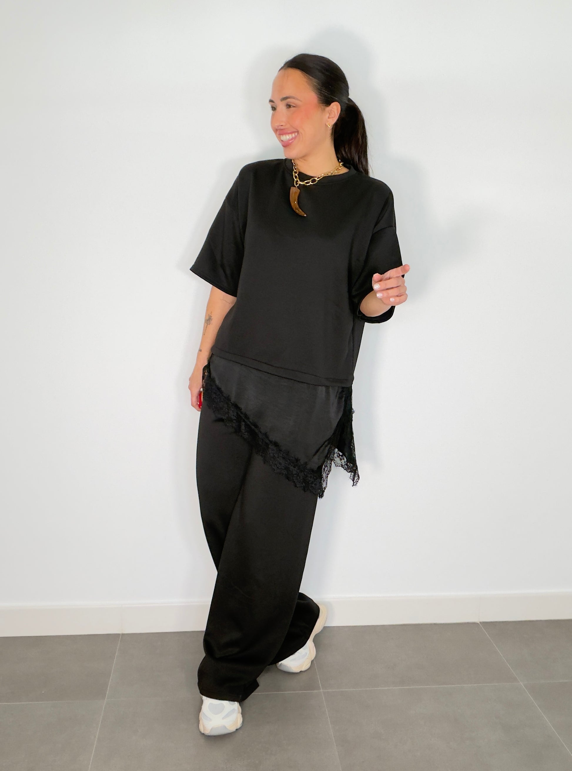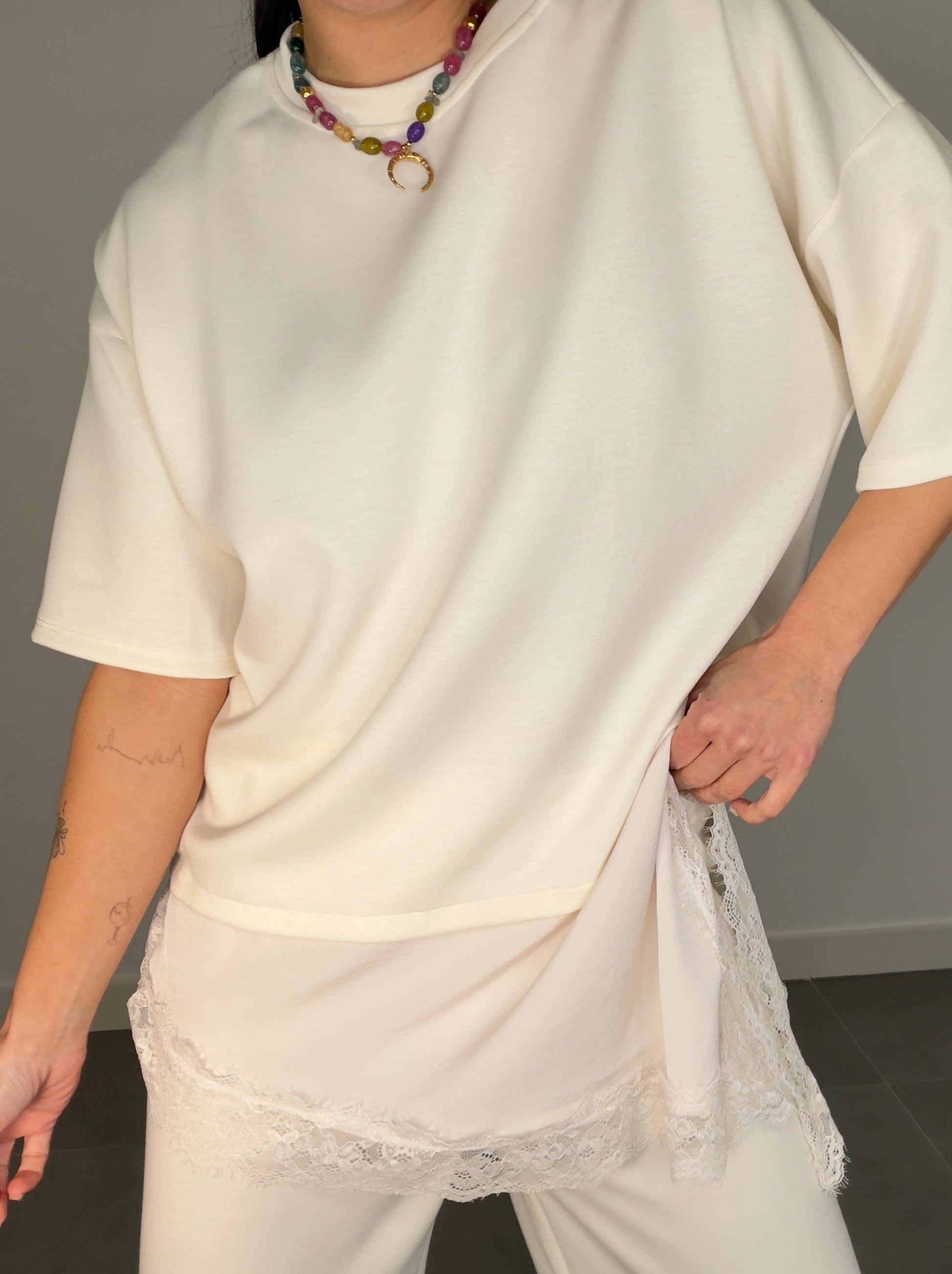 Conjunto ENCAJE CAPA DE AIRE MANGA CORTA