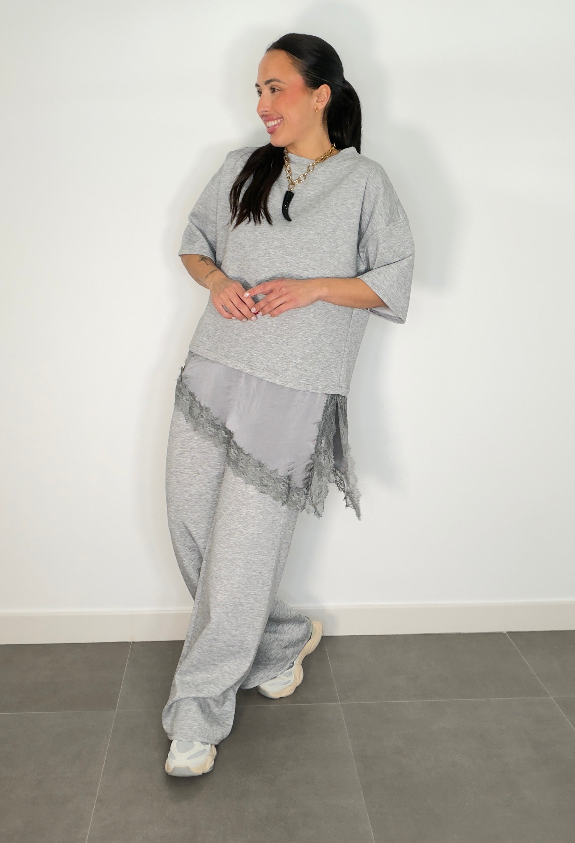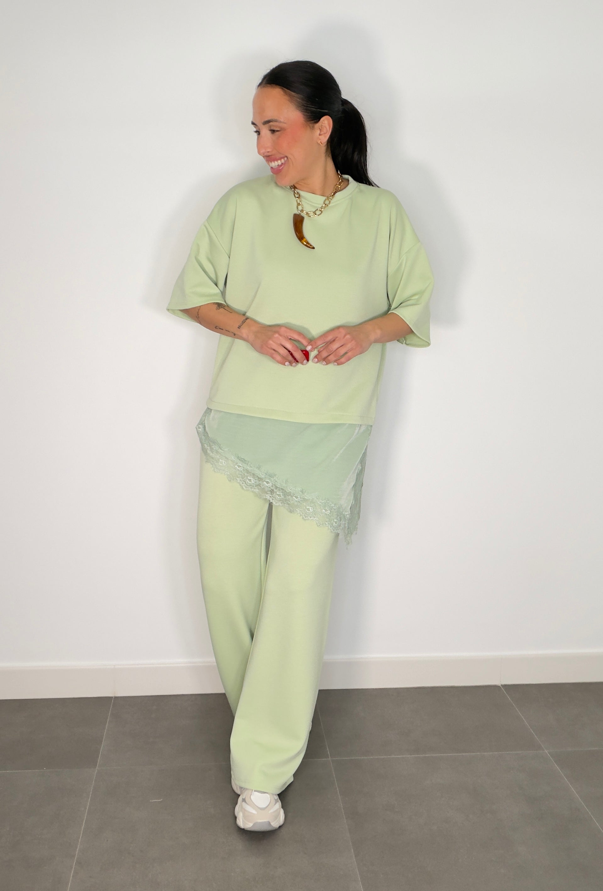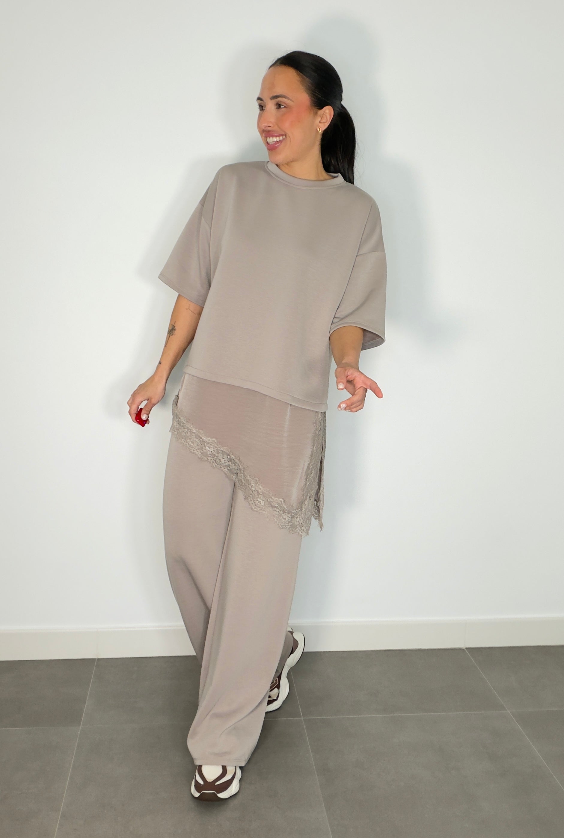 Conjunto ENCAJE CAPA DE AIRE MANGA CORTA
