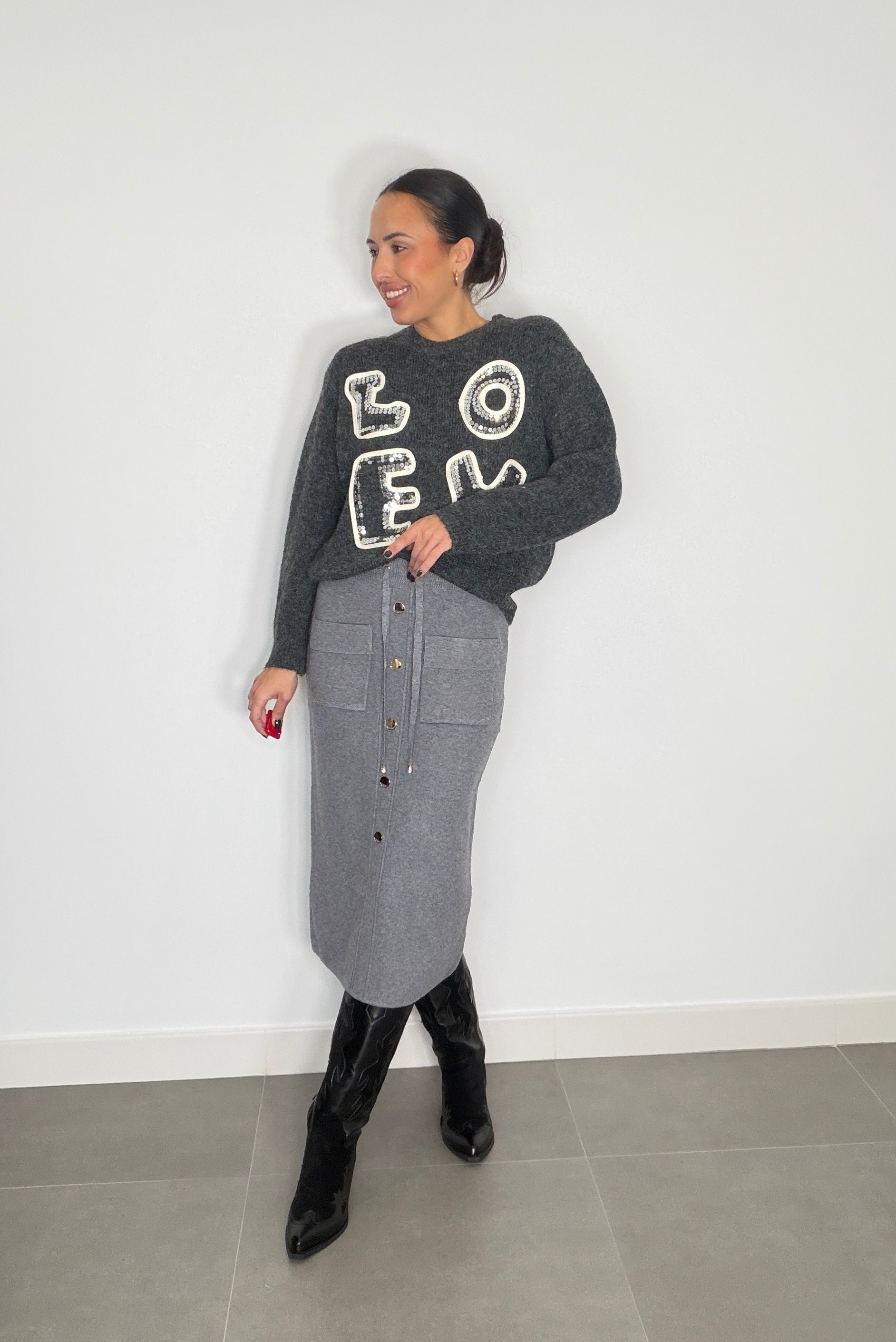 Falda PUNTO LISA BOTÓN